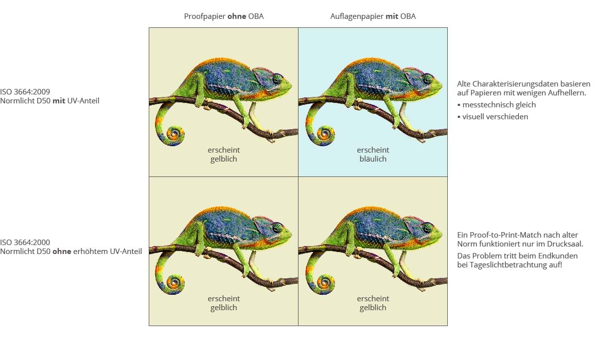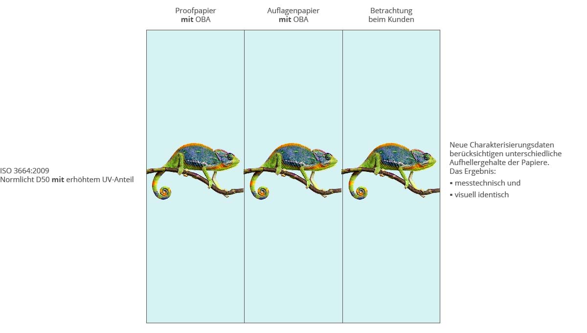Ebenso entsprechende Proofpapiere mit optischen Aufhellern (OBA). Zusammen mit Normlicht D50 nach ISO 3664:2009 von JUST sehen Sie nun genau das, was im Vorfeld definiert, geprooft, gemessen und letztendlich gedruckt wurde. Das sehen aber nicht nur Sie, sondern auch Ihr Kunde.