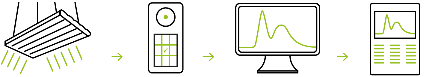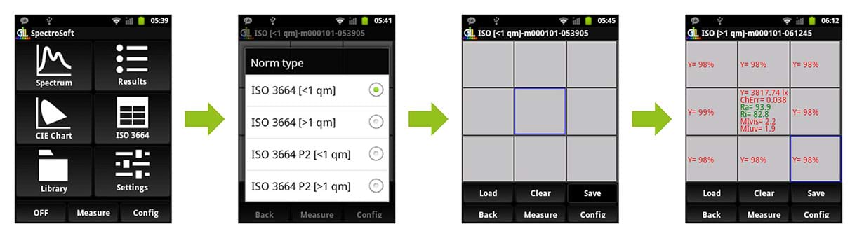 Back at workstation, you can import and evaluate the measured values using the GL SPECTROSOFT light analysis software. If you do not have a mobile spectrometer, you can also connect your spectrometer (e.g. the GL SPECTIS 1.0) to your laptop directly at the proofing area and then perform the ISO 3664 measurements using the software. No matter which spectrometer you choose, you will get exact measurements with our GL spectrometers series in any case!