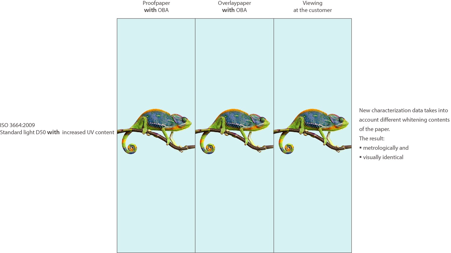 New characterization data and ICC profiles take different degrees of optical brightening content into account with the help of the new paper classes.