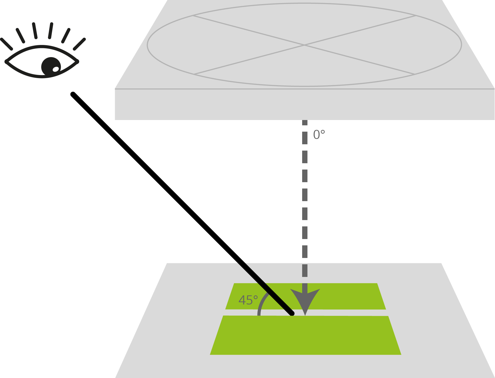 Two-dimensional sample plates need to be viewed with illumination of 0° by a viewing angle of 45° (measuring geometry 0°/45° and 45°/0° respectively). Howeder, certain application fields require different viewing and illumination angles, that is why appropriate sample holders are available in the web shop.