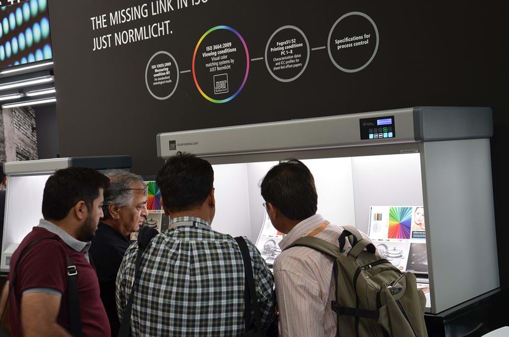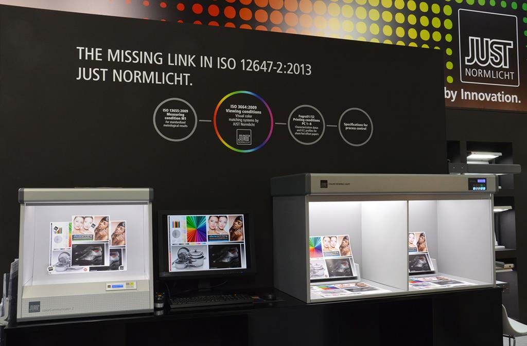 Over 260,000 visitors from 188 countries converged in Düsseldorf Germany to see and learn about new products and developments in the printing industry. For JUST customers and visitors, visual colour control and assessments to ISO 12647-2:2013 with LED lighting were paramount.