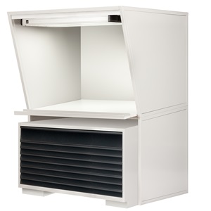 Les conditions ambiantes ont une grande influence sur l’évaluation des couleurs. Pour cette raison, dans les cabines lumineuses, même la plage d’évaluation gris neutre doit être définie. Les cabines de visionnement JUST Normlicht sont à l’origine revêtues de Munsell N7, qui peut être remplacé sur demande par du Munsell N5 et G5574, également de couleur gris neutre.