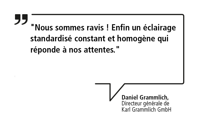 Les systèmes d'éclairage numérique (DLS) intégrés dans les DLS Retrofit produisent un spectre lumineux qui reste stable pendant des années. La distribution spectrale des illuminants normalisés D50 et D65 est si bien simulée que les directives pour l'évaluation visuelle des couleurs selon ISO 3664 et ISO 3668 sont largement dépassées.