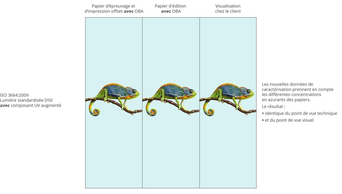 Grâce aux nouvelles classes de papiers, les nouvelles données de caractérisation et profils ICC prennent en compte une variété de fortes concentrations en azurants.